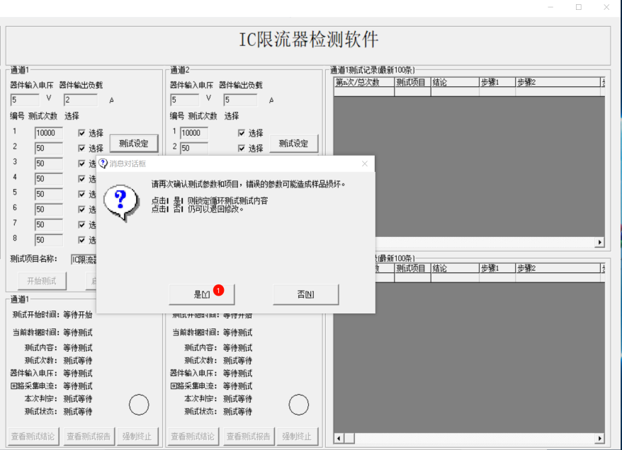 1)用户只需要输入测试器件的参数:最大电压、最大负载电流数值即可。用户接入样品,选择对应的工步,开启后自动测试并保留记录数据,用户可随时查询历史记录;